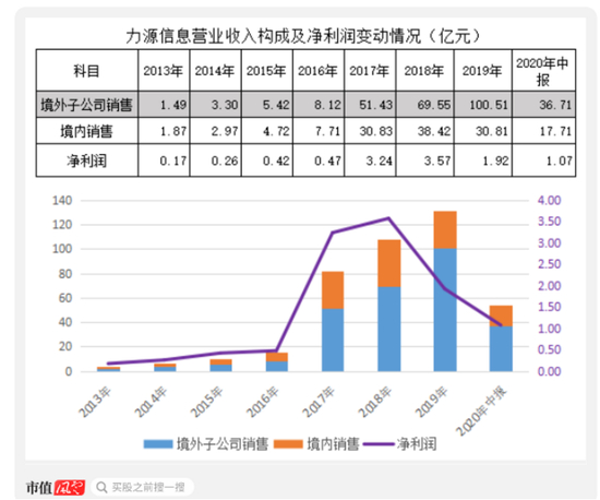 从上方图表可清晰看出,力源信息综合毛利率逐年下滑,2019年跌至5.3%。