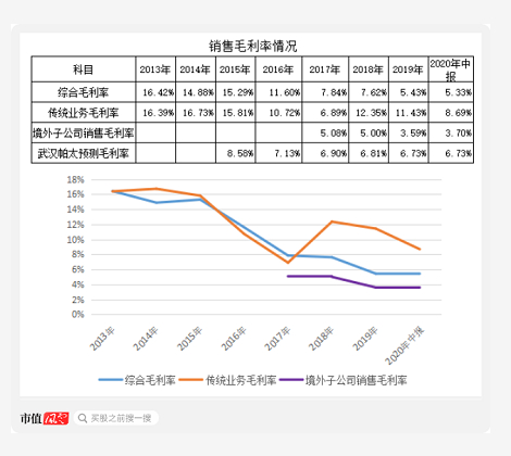 风云君对该公司的资产结构进行分析后,发现其大部分资产基本停留在账面上;对销售毛利率分析后发现,公司销售毛利率逐年下滑,花26亿收购的香港帕太(武汉帕太全资子公司)毛利率更是不到4%。