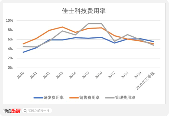 拉长时间轴来看,佳士科技的研发费用率从2012年至今基本稳定,跨越了行业的低谷期和复苏期。销售和管理费用率则是从2016年开始都有所下降。公司对研发的投入是持之以恒的。