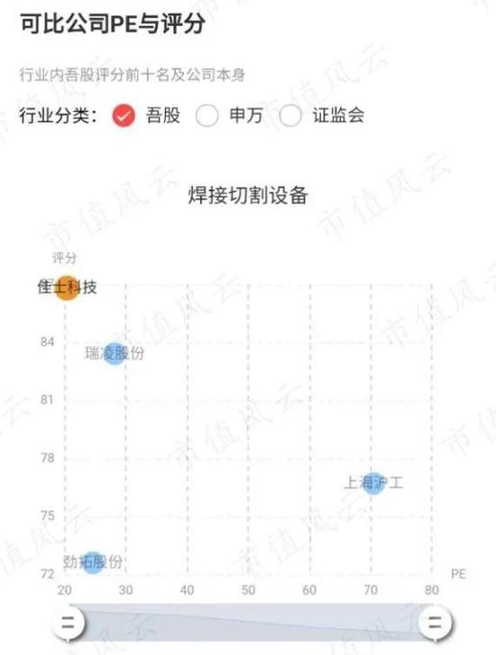 其中,佳士的吾股评分最高,原因包括最近三年连续增长,债务水平很低,现金流非常好,而且分红很大方。其次是瑞凌股份。而上海沪工评分最低,跟自由现金流不佳、商誉较高有关,上海沪工有一大部分业务属于航天军工。