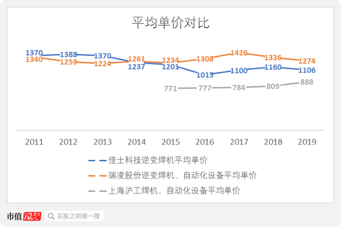 注意这里自动化设备的售价比焊机要高很多,取平均售价对比是因为佳士和瑞凌没有披露细分数据。