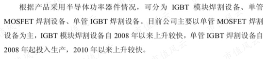 在单管IGBT逆变焊机领域的竞争对手是上海威特力(873061.OC),后者现在在新三板挂牌;