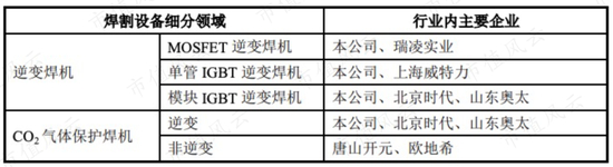 在模块IGBT逆变焊机和CO2气体保护逆变焊机领域的竞争对手是北京时代(430003.OC)和山东奥太。