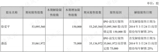截至2013年末,徐爱平持股24.06%。此后,徐爱平分别于2015年、2017年、2018年减持套现1.96亿、3.24亿、7299万元,累计5.94亿元。