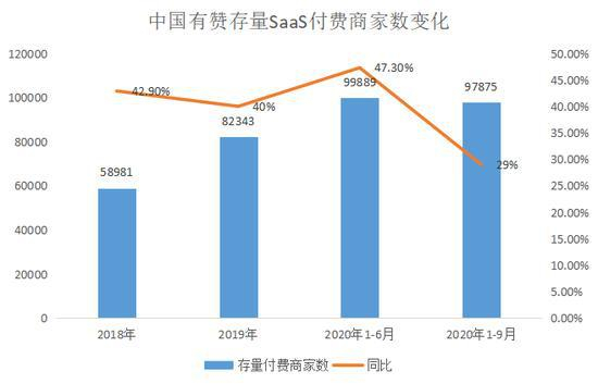 不过,目前这一高增长趋势正在发生变化,2020年前三季度,中国有赞的存量付费商家数同比增速已由上半年的47%降至29%,同时大幅落后2018年、2019年水平,另外新增付费商家数同比增速也从2020年上半年的57%降至22%。