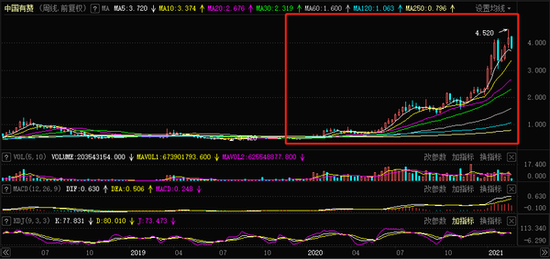 中国有赞2020年全年股价涨幅为367%,进入2021年的前两个月股价最高涨幅近95%,粗略计算,从2020年年初至2021年3月,中国有赞在一年多一点时间中,股价涨幅已超7倍,比肩ZOOM。