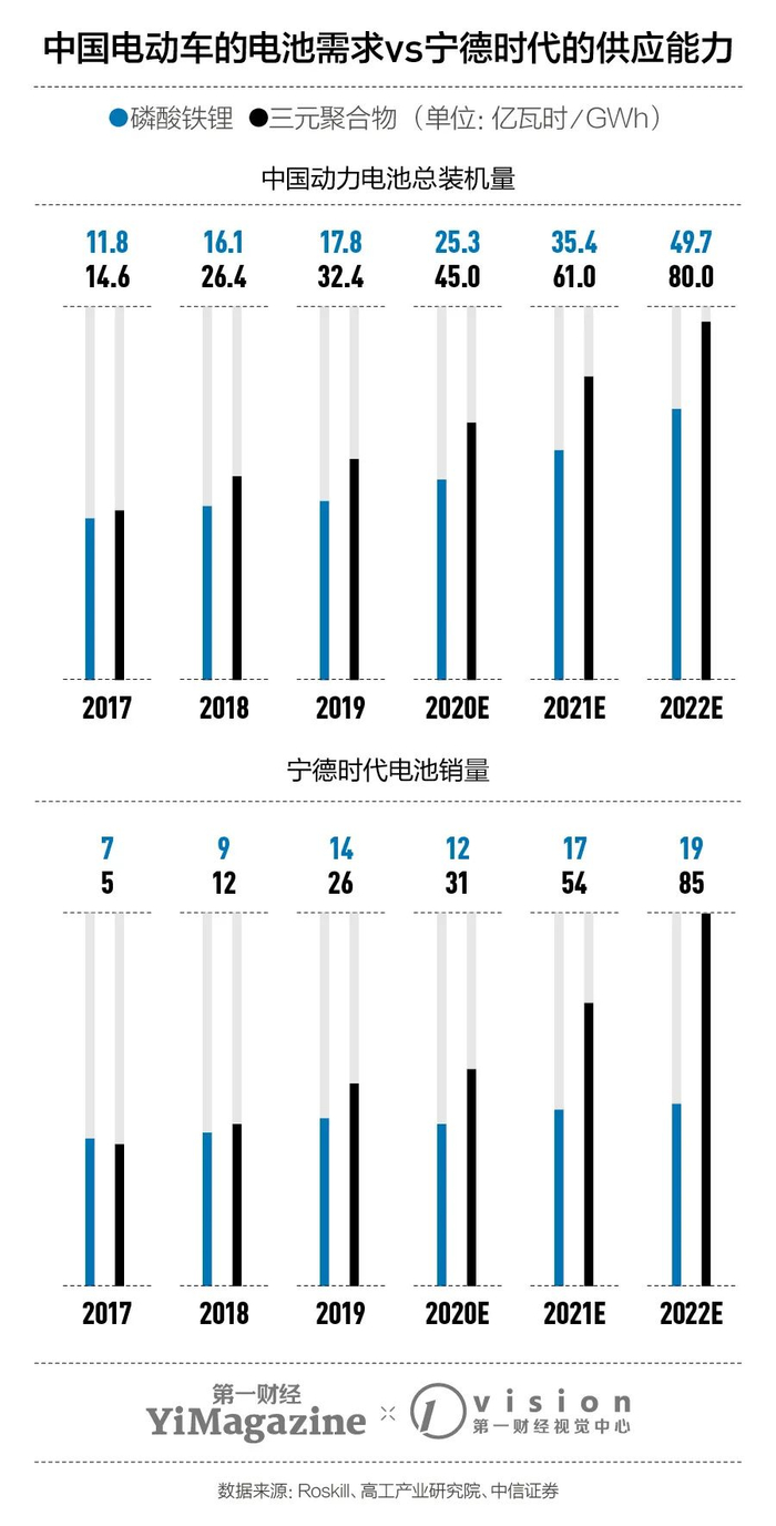对于宁德时代来说,政策和大客户都是确定性很强的生产信号。未来几年里不管中国的电动车上需要更多廉价、基础的磷酸铁锂电池,还是更多跨越了技术和成本门槛的三元锂电池,宁德时代都可以满足其中不小的比例。