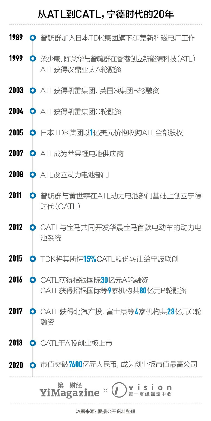 将ATL的动力电池团队本土化,成了曾毓群2011年回到家乡宁德“三次创业”、成立宁德时代(Contempory Amperex Technology Limited,CATL)的契机。