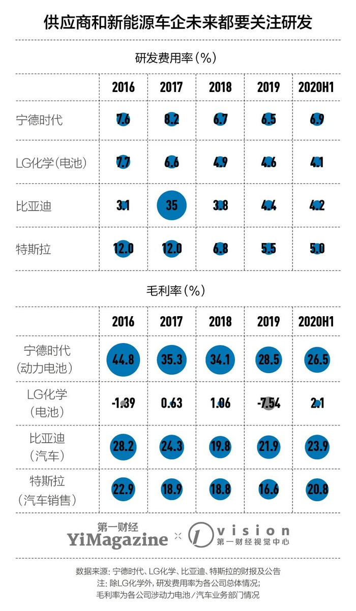 作为电动车产业链的中游环节,如果专注于动力电池研究,就意味着进入了一个高研发投入、长回报周期的“风险行业”。以行业龙头LG化学为例,集团资源和外部基金可以支撑起公司每年相当于20亿元至30亿元人民币的研发投入,却无法保证公司最基础的毛利率始终为正。