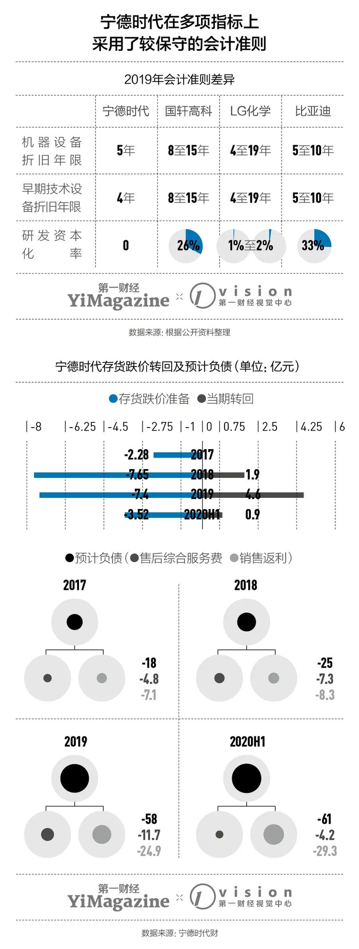 根据中信证券的核算,通过缩短折旧年限、研发成本100%费用化、提前计提存货跌价,以及计提大量的电池质保费用、兑现销售返利等会计手段,宁德时代在2019年将最多可达42亿元的净利润“处理”成了运营成本。