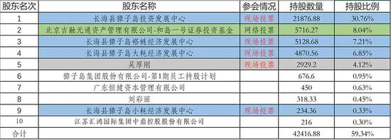 獐子岛是集体所有制企业,我们先来看目前獐子岛的前十大股东:
