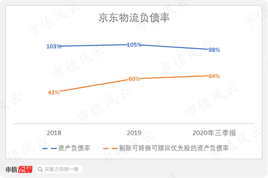 截至去年三季度末,京东物流的资产负债率高达98%,看上去很高。
