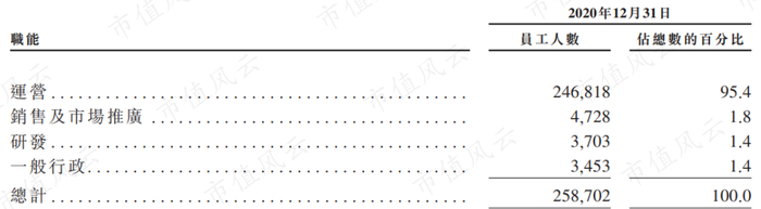 京东物流负责配送、仓库运营和其他客服的人员(统称为运营人员)约有24.7万人,占总员工人数的比例高达95.4%,其中自有配送团队就超过19万人。这些对应的就是营业成本中的员工福利开支。