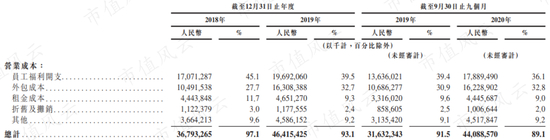 2020年前三季度,员工福利和外包成本合计占营收的比例为68.9%,同比下降1.4个百分点;2019年,合计占比为72.2%,同比下降0.6个百分点。