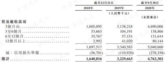 再来看应收账款的质量。截至去年三季度末,93.0%的应收账款账龄位于3个月以内,这一比例逐年在下降(2018、2019年末分别为94.6%、93.9%)。