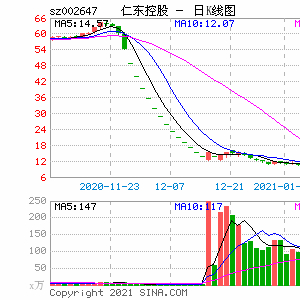 2019年年底开始,在无明显业绩支撑的情况下,仁东控股股价从16.74元/股一路飙涨至64.72元/股,市值最高达359亿元。股价见顶之后,在2020年11月下旬至12月中旬,仁东控股创下14个跌停纪录,被喻为史诗级的大崩盘。