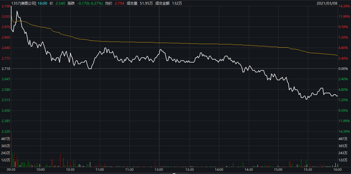 受上述消息刺激,3月8日早间,美图公司股价大幅高开14%。不过,美图这则“重磅消息”的发布时间,似乎有点生不逢时。当日正好碰上港股高开低走,香港恒指收盘大跌1.92%,恒生科技指数更是暴跌6.4%,美图公司股价最终收跌6.27%,全天振幅超过22%。