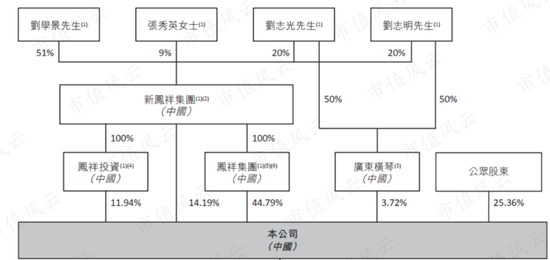 凤祥股份于2020年7月在港交所上市,实际控制人为刘学景,连同妻子张秀英、两个儿子刘志光和刘志明,持有74.64%的股份。