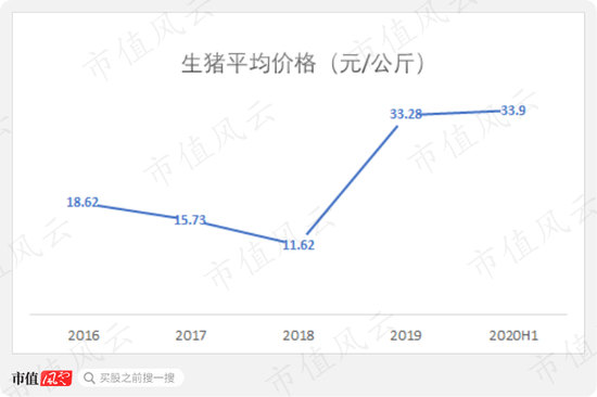 另外,从2018年二季度开始,猪肉从猪瘟阴影中逐步走出来,生猪肉价格开始恢复性上涨,2019年生猪平均价格较2018年增长近3倍。