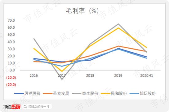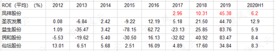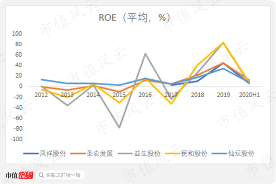 2019年,凤祥股份ROE为45.38%,超过圣农发展、仙坛股份,但2017、2018、2020H1,凤祥股份ROE均低于二者。