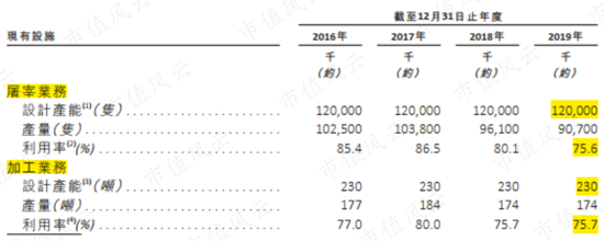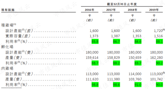 招股书说,经过扩产后,预计2020年底,种鸡场、肉鸡场、屠宰业务的设计常能将会同比增长35.5%、39.7%、67.0%,公司整体设计产能提升约63.6%,生鸡肉制品销量也将会有所恢复。