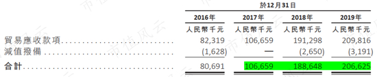 应收账款2018年为1.89亿,较2017年大幅增加超过0.8亿。主要是由于海外一名主要客户于2018年持续下大订单,根据历年前五大客户推断应该为马来西亚的客户。2019年公司应收账款小幅增加。