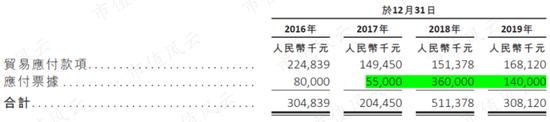 应付账款和票据2018年激增至5.1亿,主要为应付票据由上年0.55亿增至3.6亿,2019年公司流动资金改善后,应付票据下降至1.4亿。