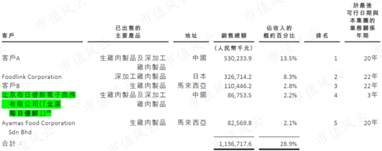 每日优鲜位列2019第四大客户,第一大客户推断为肯德基(圣农发展为麦当劳唯一中国本土鸡肉供应商)。