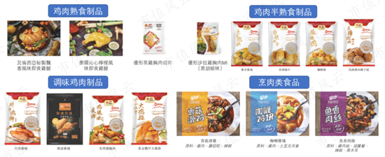 成品主要包括生鸡肉制品及深加工鸡肉制品;