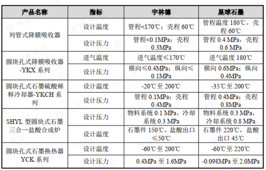 新三板上市公司宇林德同样从事石墨设备和石墨制品的生产销售,虽不直接与星球石墨竞争,但可比性更强。如下表,较宇林德而言,星球石墨产品的设计温度更高点、设计压力更大点。
