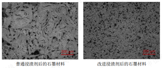 石墨属于透性材料,存在部分孔隙,即存在渗透性,因此需要采用浸渍或压型的方式将石墨中的孔隙填充形成不透性石墨。