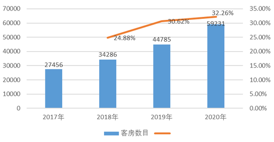 图2:2017~2020年客房数目增长情况