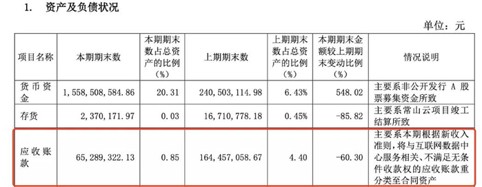 也就是说,2020年数据港在新增1.8亿收入的同时,旧准则口径下的“应收账款”也同步增加了接近的金额。
