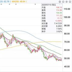 自去年7月10日股价摸高114.86元之后,该股反复下挫,近期已跌至40多元,八个月下跌了近六成。