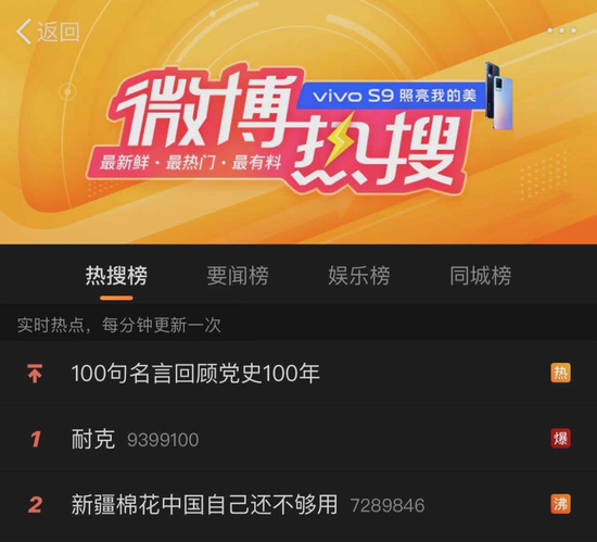 25日早上,耐克的热搜爆了。随着事件的继续发酵,阿迪达斯也爆了,优衣库也上了热搜。