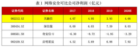 四家上市公司2020年度业绩快报都已经披露,根据数据显示,深信服以8.03亿元名列四家公司净利润之首,启明星辰以7.92亿元紧随其后,他们的净利润规模都大幅领先天融信。奇安信虽然净利润依旧为负,但也在努力的缩小亏损的规模。通过对比发现三家可比公司,在2019年均未遭遇净利润下滑的现象。