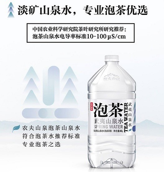 除电导率外,农夫山泉还表示,旗下泡茶水的优势还在于“含适量的矿物元素,会更适合茶叶的冲泡”。未来,除武夷山水源地,品牌还将积极探索其他适合做泡茶水的水源地。