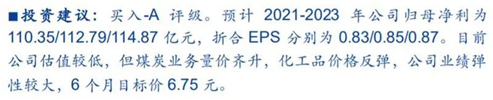 安信证券分析指出,2021 年 1-2 月,公司实现商品煤产、销量 1930 万吨、4740 万吨,同比增长 18.6%与 38.5%。实现烯烃产、销量 26 万吨与 23.8 万吨,分别同比增长 4.42%与 35.23%。在煤价与油价中枢均有望上移的背景下,公司有望量价齐升,带动业绩释放。