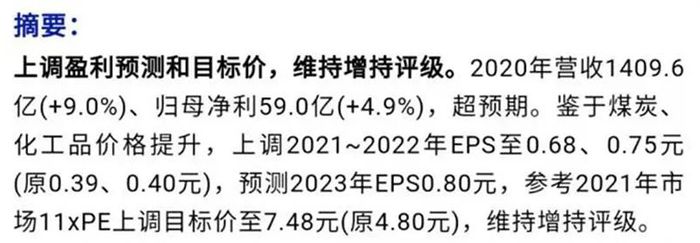 记者注意到,中煤能源日前发布2020年年报后,多家券商上调了中煤能源的目标价。其中安信证券将公司6个月目标价上调至6.75元。
