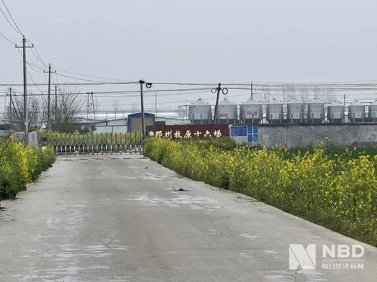 邓州牧原十六分场、十七分场与邓州牧原第五分场相邻,成“一”字排开。记者在邓州牧原十六分场看到,该养殖场大门紧锁,料槽附近停有两辆大卡车。
