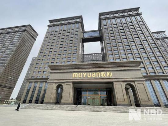 牧原集团也在该工业园。3月23日,记者来到牧原集团和牧原股份的地址,上市公司的员工和集团员工在这里办公,里面有篮球场、足球场、图书馆等设施,办公楼门口写有“牧原”二字。