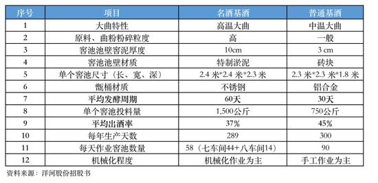 表1:洋河股份9,000吨/年普通基酒和9,000吨/年名优基酒生产安排主要差异