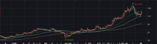 安踏体育近两年股价走势(港元)