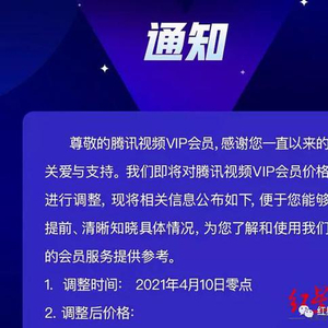 4月10日,腾讯视频VIP价格将全面上涨。