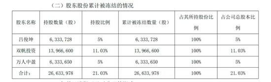 “祸不单行”的是,接盘上市公司控股权的厦门商人吕俊坤去年11月离奇失联,其个人及旗下企业所持股份全部被司法冻结。