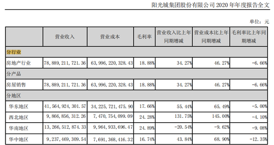 2020年阳光城的利润率为6.68%,与上一年的7%相比,又下降了0.32个百分点。毛利率为18.88%,同比下跌了6.66%。