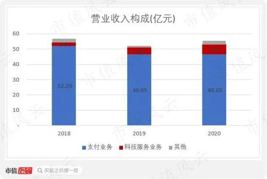 不过,在商户经营增值服务(2020年改称为“科技服务”)对拉卡拉总营业收入贡献越来越大时,现阶段传统的支付业务仍旧是公司的支柱业务。