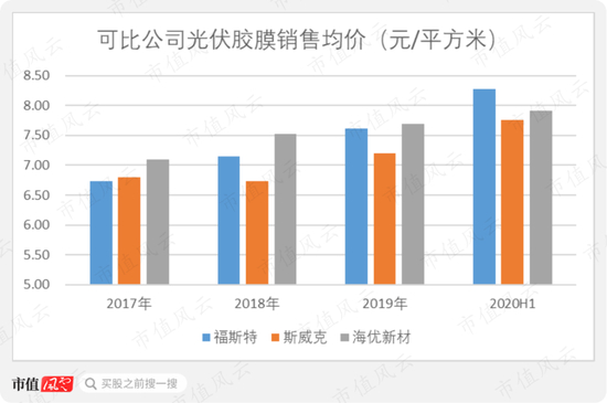 对比自身,2017年-2020年6月期间,福斯特的光伏胶膜销售均价在稳步提升。