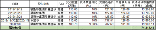 2014年上市之后,到2020年之前,福斯特集团分别在2018年3月、2019年10月,减持过两笔,合计4.66亿元,也还算得上低调。
