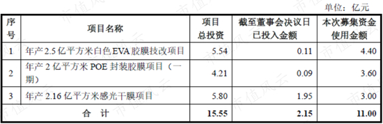 2019年11月19日,福斯特发行了11.00亿元可转债——“福特转债”,主要用于以下三个项目: